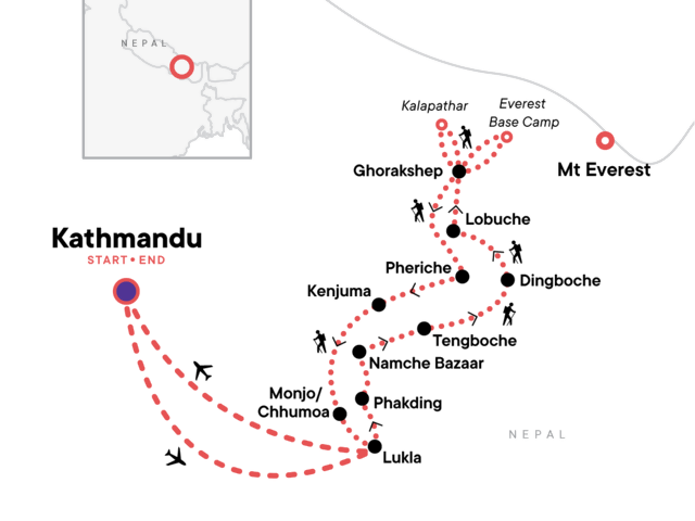 2. In the Himalayas weather can cancel or delay the scheduled flight(s) to/from Lukla airport. To be sure that you make your trek, or return from it, it may be necessary to make this flight by a chartered helicopter. Helicopters can operate in some weather that aircraft cannot. Should a helicopter be needed, it will be at the expense of the travellers, and not something covered by G Adventures. Please keep approximately USD 500 (one way) accessible in case this situation presents itself. This suggested amount is in addition to the emergency fund suggested in the tour details.